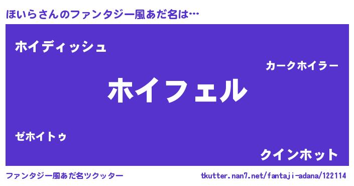 | 男性向けラノベタイトル風あだ名 | 『ほいらの憂鬱』『緋弾のホイラ』 |