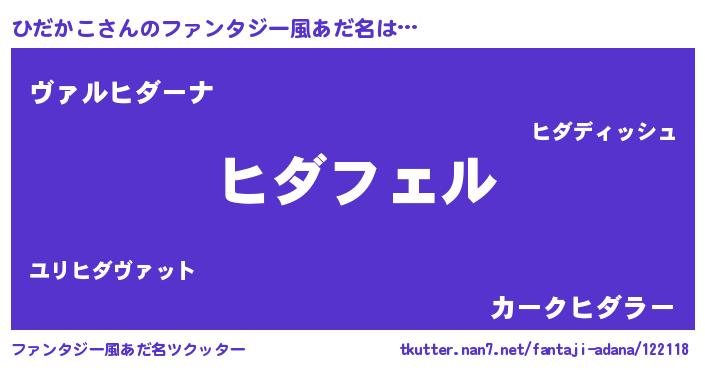 | 男性向けラノベタイトル風あだ名 | 『ひだかこの憂鬱』『魔弾の王とひだかこ』 |