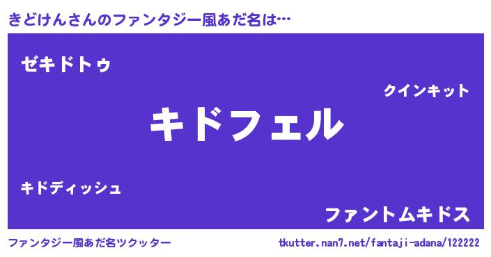 | ヒーロー風カッコイイあだ名 | 『スーパーキドケン』『魔戒騎士キド』 |