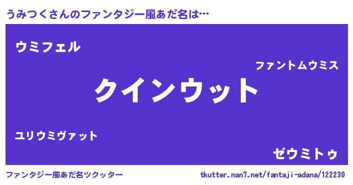 | 女子向けラノベタイトル風あだ名 | 『うみつく夫妻のなれそめ』 |