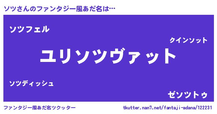 | 男性向けラノベタイトル風あだ名 | 『ソツスレイヤー』『魔法科高校のソツ』 |