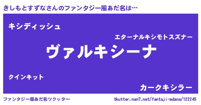 | 男性向けラノベタイトル風あだ名 | 『この素晴らしい世界にきしもとすずなを!』 |