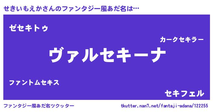 | 伝説のあだ名 | 『伝説の竜騎士せきいもえか』 |