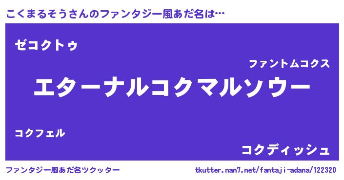 | 意味不明あだ名 | 『こくまるそうフォーエバー』 |