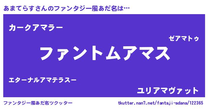 | ポケモン風あだ名 | 『アマゴンZ』『ヒアマテラス』 |