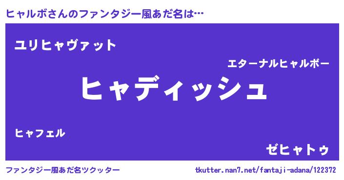 | ヒーロー風カッコイイあだ名 | 『ネオヒャルボ』『最強戦士ヒャルボ』 |
