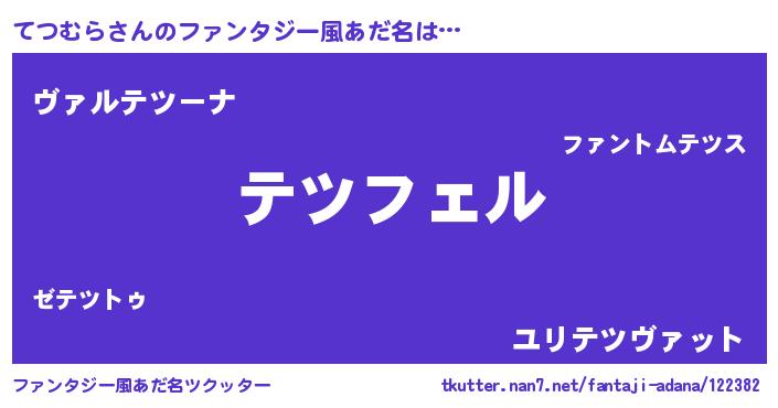 | 男性向けラノベタイトル風あだ名 | 『てつむらの憂鬱』『魔弾の王とてつむら』 |