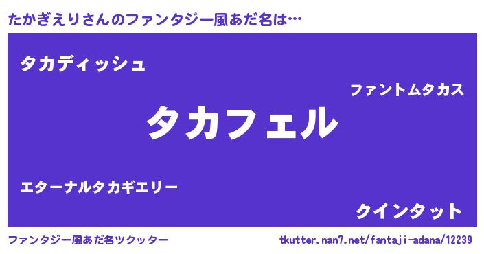 | 男性向けラノベタイトル風あだ名 | 『タカギエリアートオンライン』 |