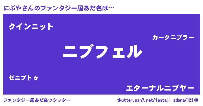 | 自動車の名前っぽいあだ名 | 『ニブティマ』『ニンR』『ニスラー』 |