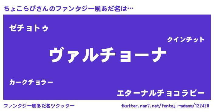 | 意味不明あだ名 | 『住所不定無職ちょこらび(74歳)』 |