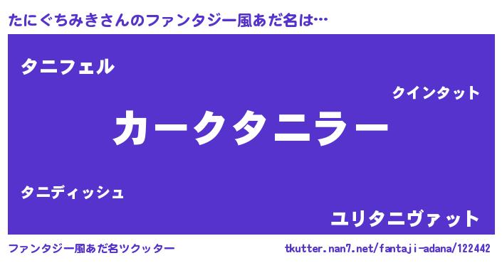 | 男性向けラノベタイトル風あだ名 | 『うちのたにぐちみきが世界を掌握している!』 |