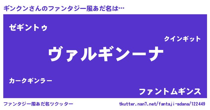 | 男性向けラノベタイトル風あだ名 | 『この素晴らしい世界にギンクンを!』 |