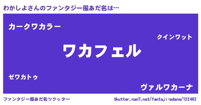 | 男性向けラノベタイトル風あだ名 | 『ワカシヨアートオンライン』 |