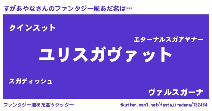| 男性向けラノベタイトル風あだ名 | 『すがあやな~年齢イコール彼女いない歴の魔法使い~』 |