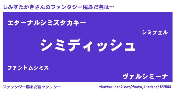 | 胡散臭い通販商品みたいなあだ名 | 『来世でも幸せになれる健康食品…その名も「しみずたかき」』 |