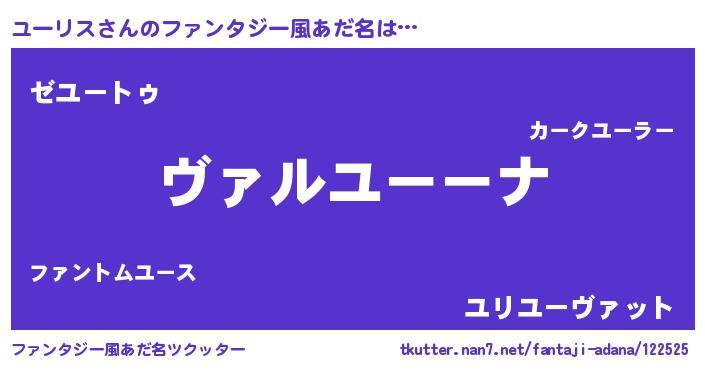 | 意味不明あだ名 | 『住所不定無職ユーリス(4歳)』 |