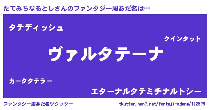 | 男性向けラノベタイトル風あだ名 | 『魔弾の王とたてみちなるとし』 |