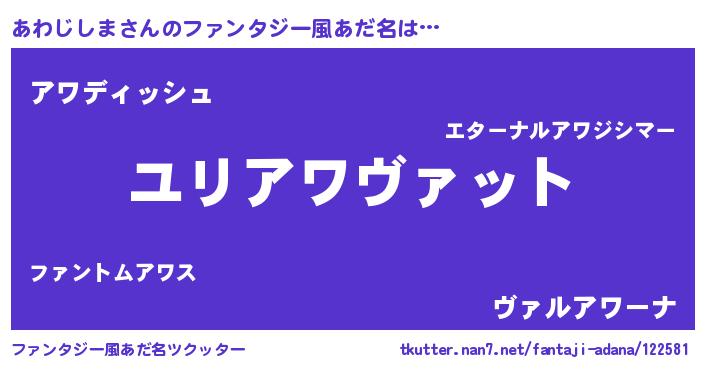 | 男性向けラノベタイトル風あだ名 | 『あわじしまに滅ぼされるだけの簡単なお仕事です』 |