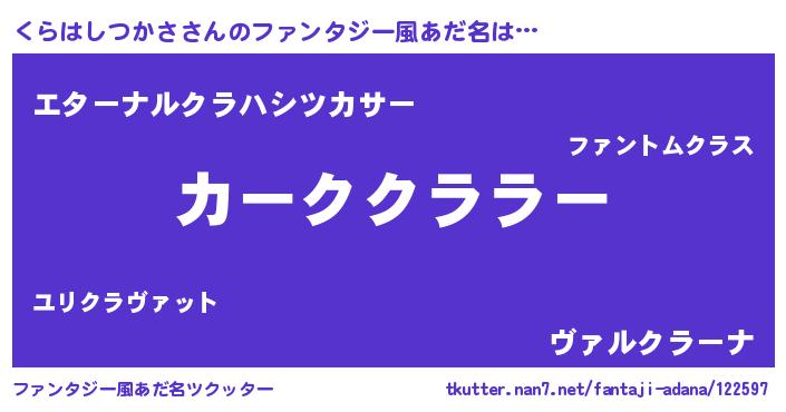 | 意味不明あだ名 | 『くらはしつかさフォーエバー』 |