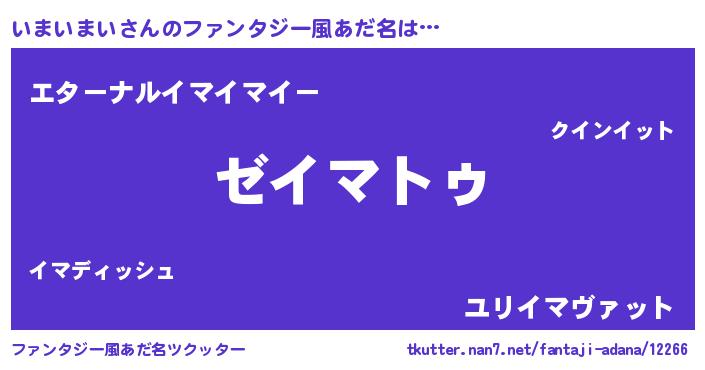 | 意味不明あだ名 | 『自称いまいまい』『永久保存いまいまい』 |