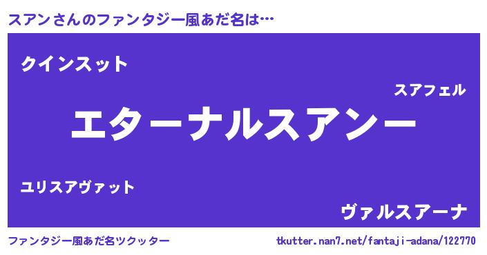 | 女子向けラノベタイトル風あだ名 | 『スアンの雑貨屋さん』 |