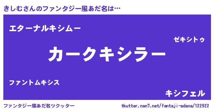 | 男性向けラノベタイトル風あだ名 | 『きしむに滅ぼされるだけの簡単なお仕事です』 |