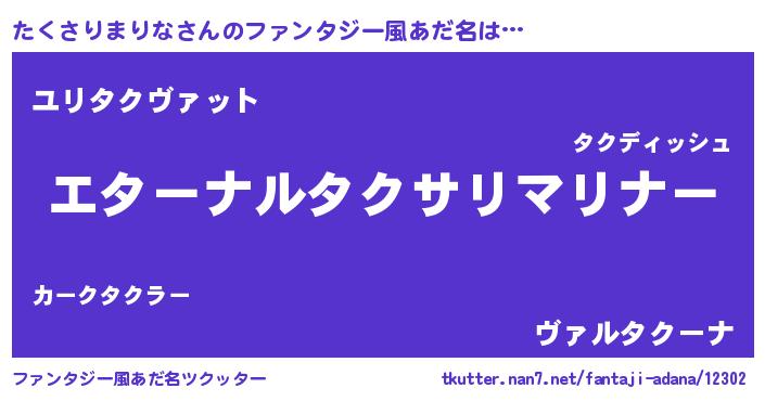 | 女子向けラノベタイトル風あだ名 | 『たくさりまりなの雑貨屋さん』 |