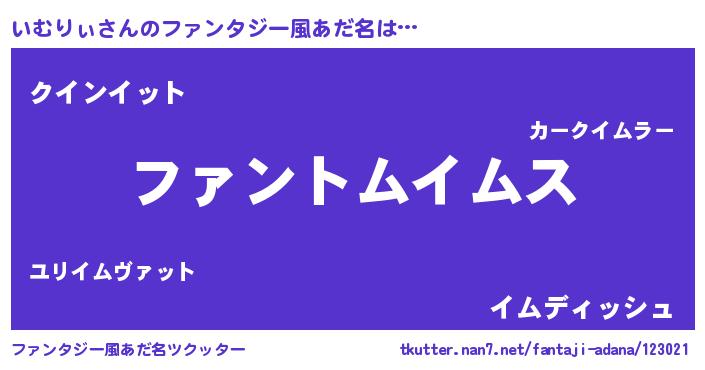 | ヒーロー風カッコイイあだ名 | 『暗黒騎士イム』『愛の使者いむりぃ』 |