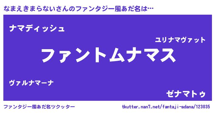 | 胡散臭い通販商品みたいなあだ名 | 『信頼と実績のサプリメント…その名も「なまえきまらない」』 |