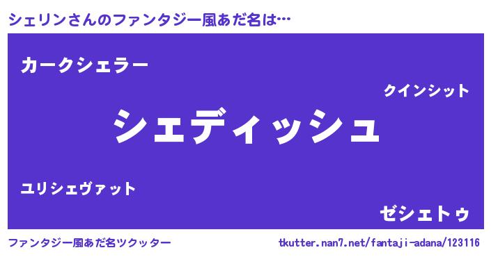 | ヘコむあだ名 | 『シェリン(苦笑)』『シェっふぃ~』 |