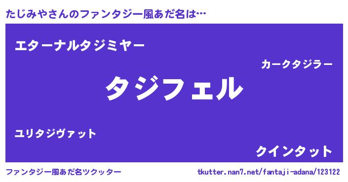 | 自動車の名前っぽいあだ名 | 『タジティマ』『タスラー』『タンR』 |