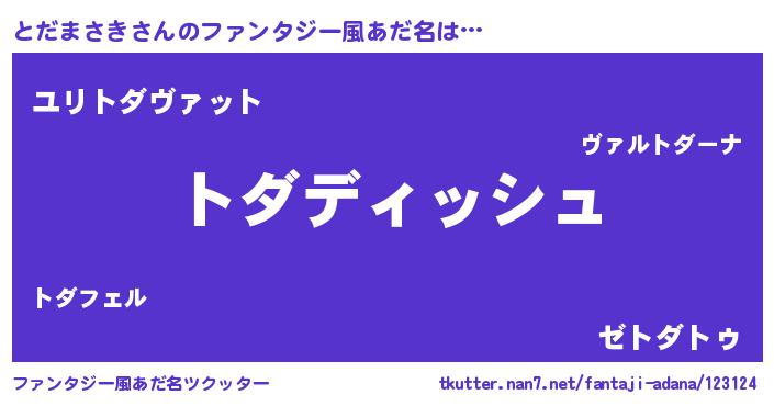 | 意味不明あだ名 | 『永久保存とだまさき』『自称とだまさき』 |