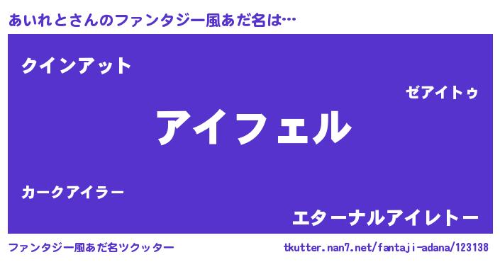 | 男性向けラノベタイトル風あだ名 | 『アイレトアートオンライン』 |
