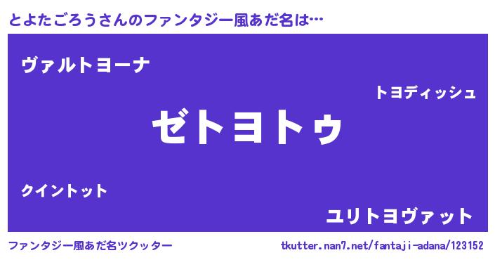 | 意味不明あだ名 | 『自称とよたごろう』 |