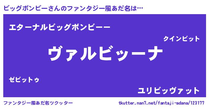 | 意味不明あだ名 | 『住所不定無職ビッグボンビー(91歳)』 |