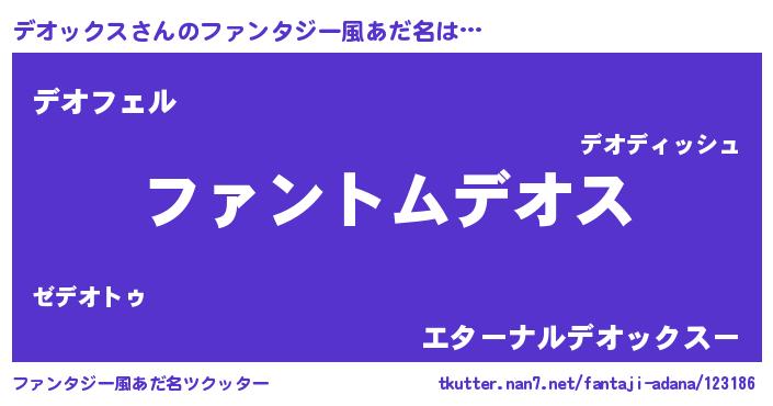 | 男性向けラノベタイトル風あだ名 | 『デオックスの嫁は女の子じゃないと思った?』 |
