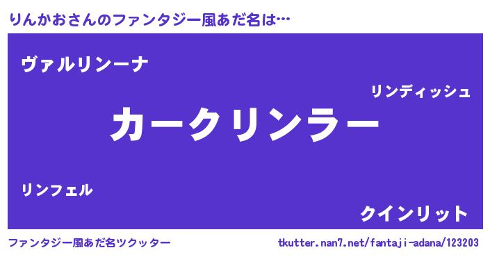 | 意味不明あだ名 | 『住所不定無職りんかお(6歳)』 |