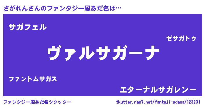 | ヒーロー風カッコイイあだ名 | 『仮面サガダー』『スーパーサガレン』 |
