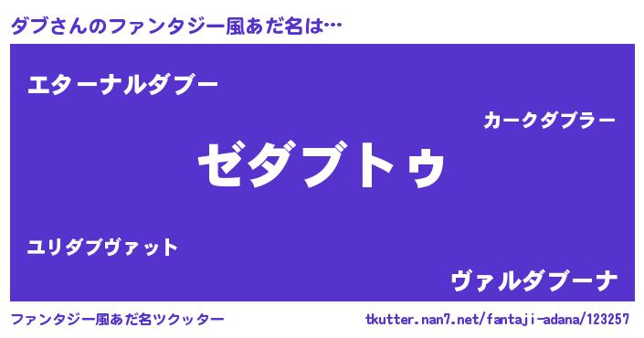 | 男性向けラノベタイトル風あだ名 | 『Re:ダブから始める異世界生活』 |