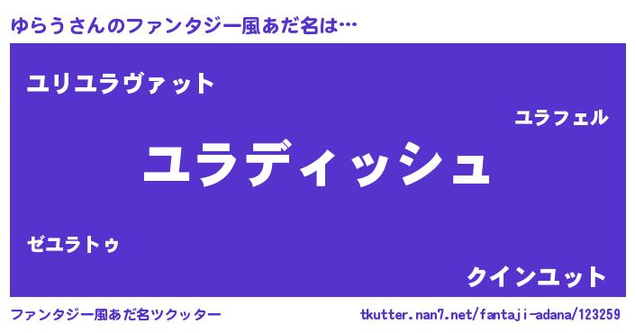 | ヒーロー風カッコイイあだ名 | 『ネオユラウ』『天空の使者ゆらう』 |