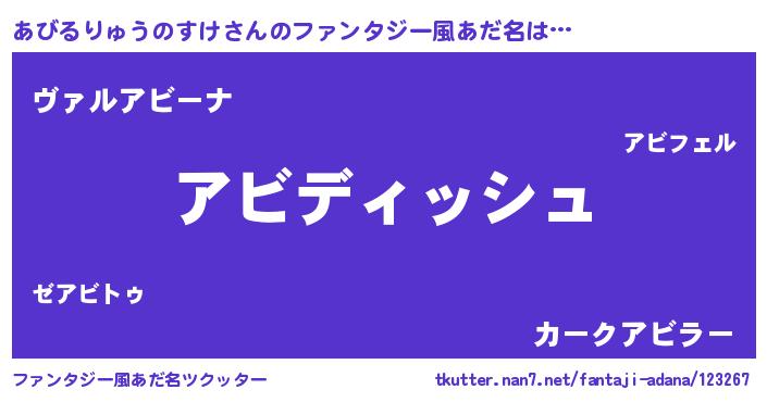 | 男性向けラノベタイトル風あだ名 | 『はたらくあびるりゅうのすけさま!』 |