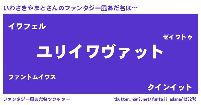 | 男性向けラノベタイトル風あだ名 | 『イワサキヤマトスレイヤー』 |