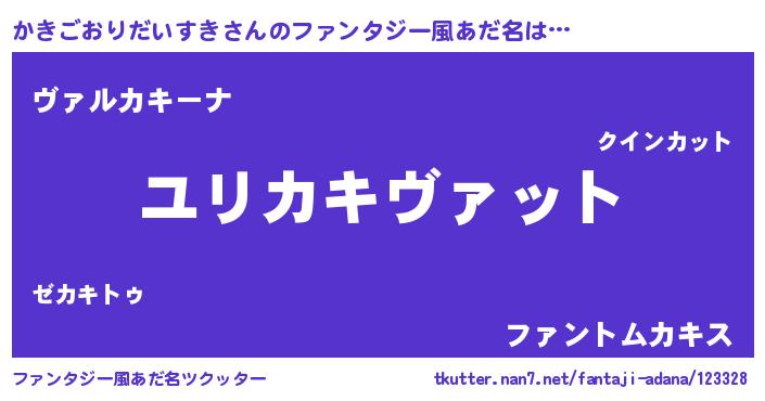 | 欧米人風あだ名 | 『アンジェラ・かきごおりだいすき』 |