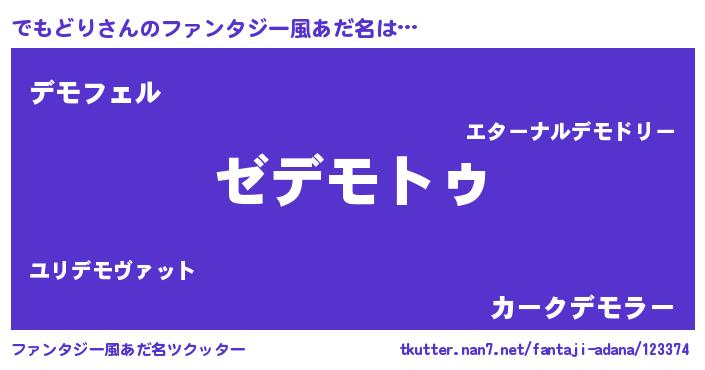 | ヒーロー風カッコイイあだ名 | 『ウルトラ戦士デモドリ』『銀牙騎士デモ』 |