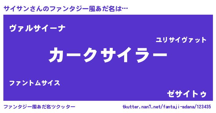 | 男性向けラノベタイトル風あだ名 | 『緋弾のサイサン』『魔弾の王とサイサン』 |