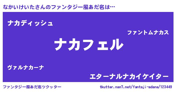 | 女子向けラノベタイトル風あだ名 | 『なかいけいた姫と円卓の騎士』 |