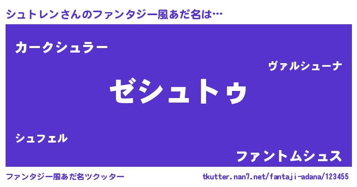 | ヒーロー風カッコイイあだ名 | 『最強戦士シュトレン』『銀牙騎士シュ』 |