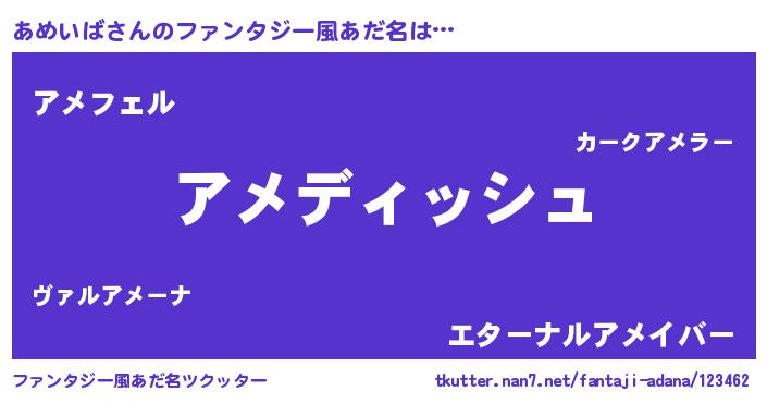 | ヘコむあだ名 | 『あめいば(笑)』『あめにー』 |