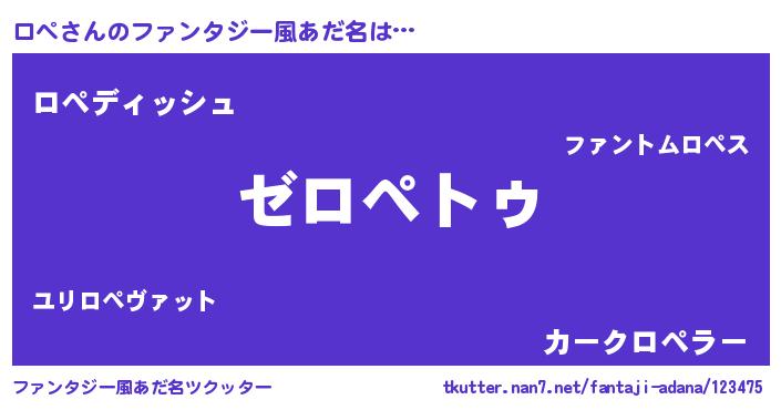 | ポケモン風あだ名 | 『ロペセウス』『ゼニロペ』『ヒロペ』 |