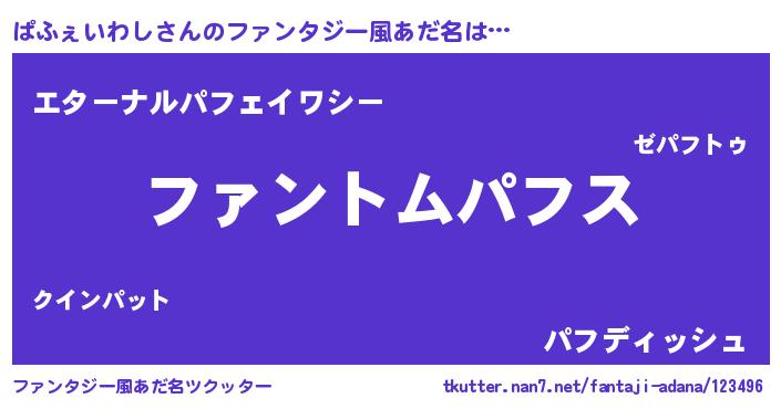 | 女子向けラノベタイトル風あだ名 | 『ぱふぇいわしの卵を拾いまして』 |